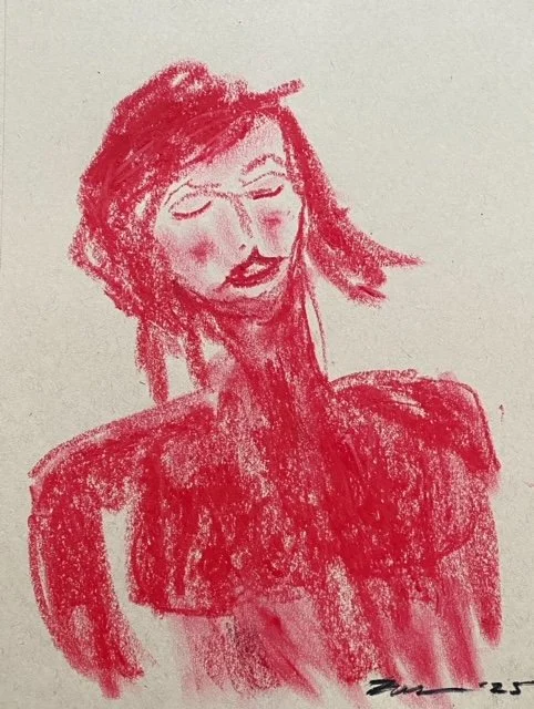 Girl Red, 2025. Crayon on tan acid free paper (9” x 12”).